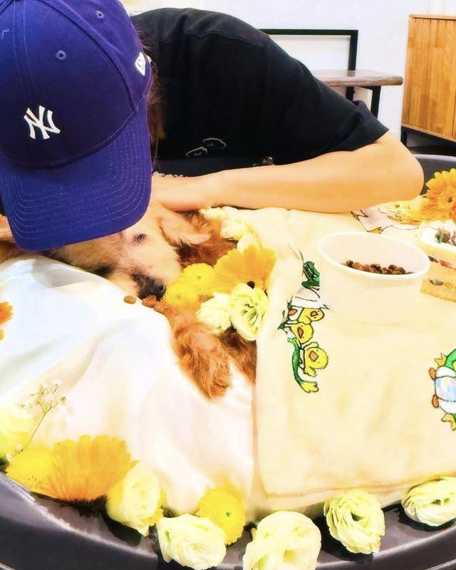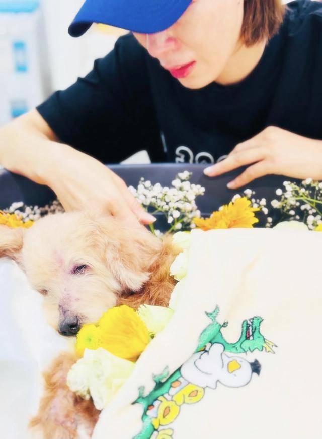 从杨茜尧分享的照片中不难看出,她精心为爱犬举办了一个送别仪式,爱犬平静的躺在那里,周围布满了鲜花,而作为主人的杨茜尧则是穿着黑色的T恤,戴着棒球帽,送别爱犬的时候,杨茜尧一度泣不成声,看得出她十分不舍。