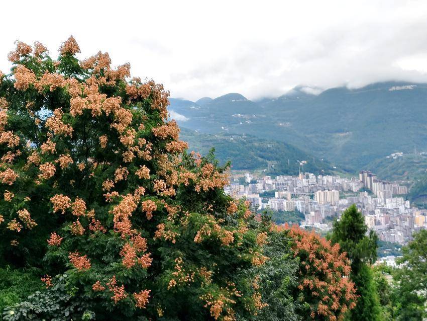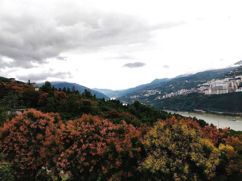 秋雨过后,巴东县城两岸的栾树上的果实挂满枝头,颜色由米黄变成深红,仿佛是秋天派来的使者。还有那不知名的树木,叶子由绿转黄,层层叠叠,微风拂过,树叶沙沙作响,似在低声诉说着秋的故事。